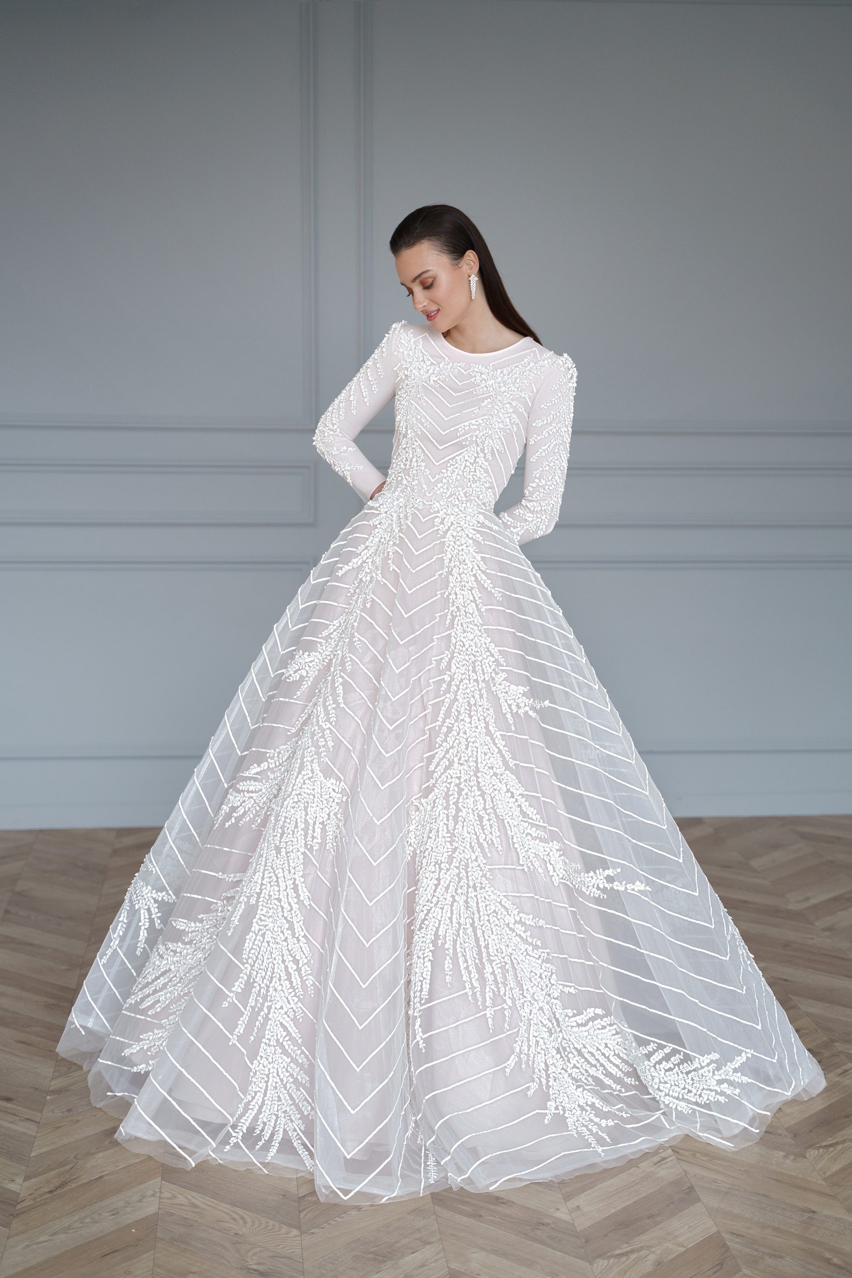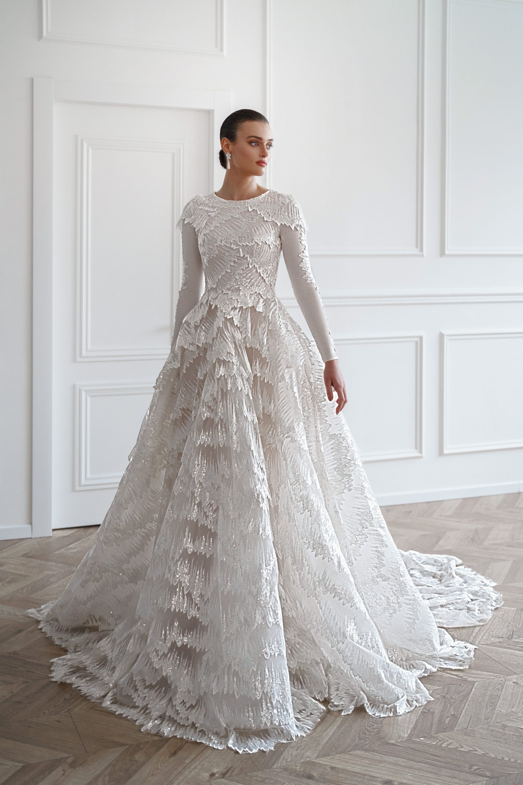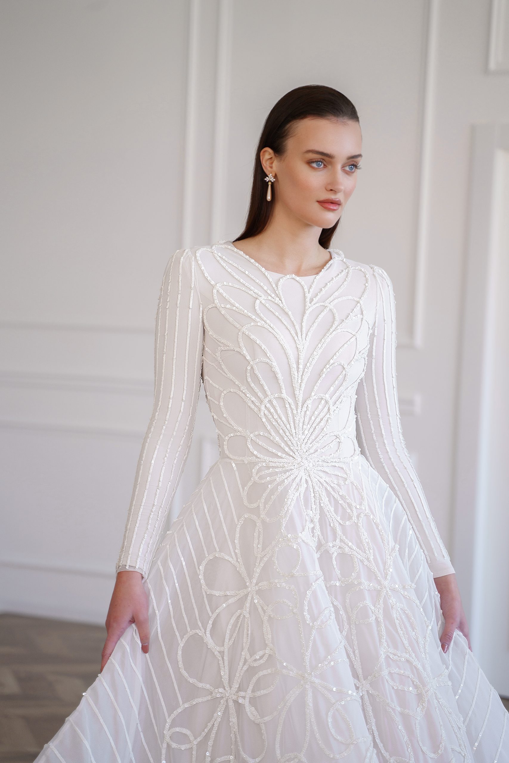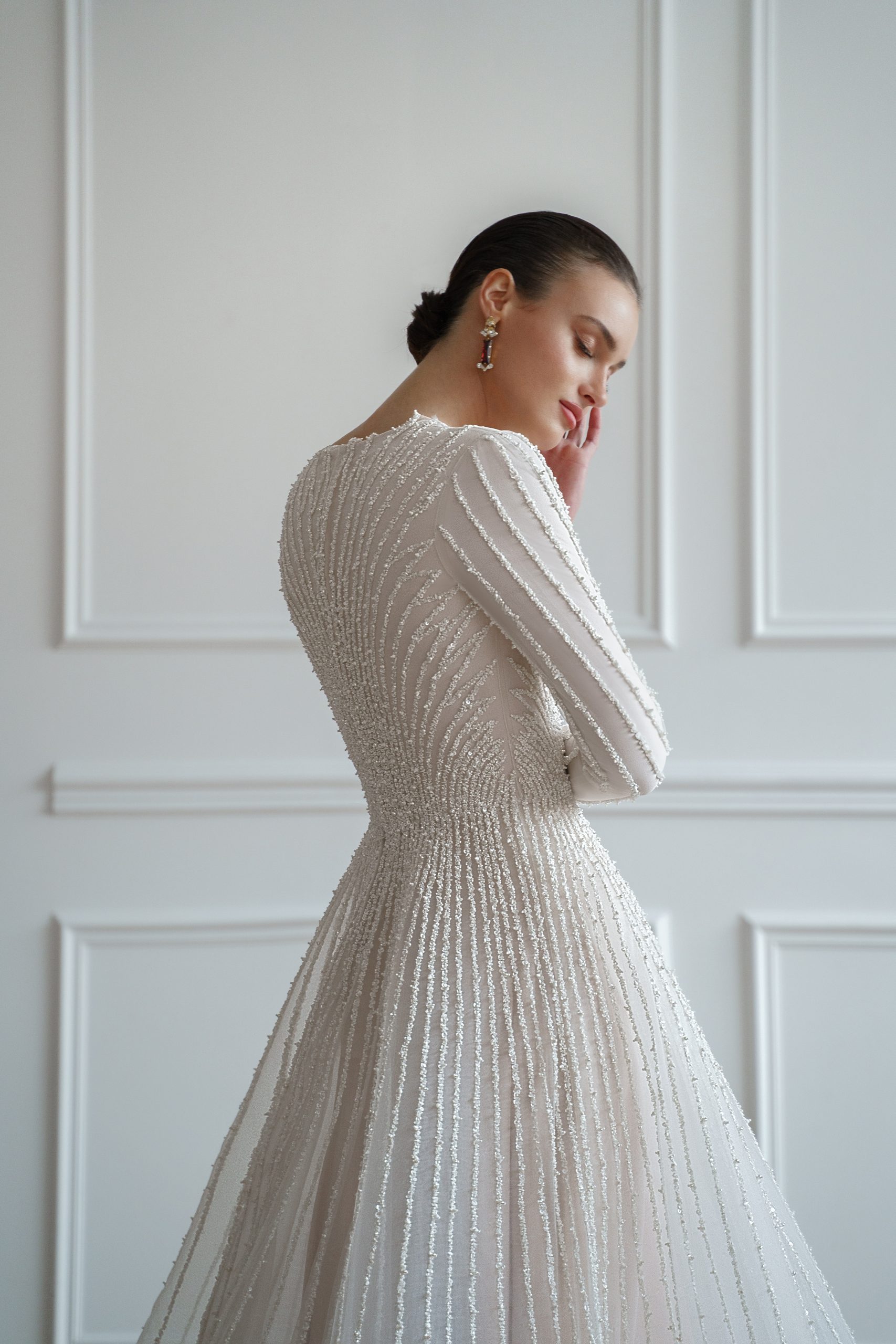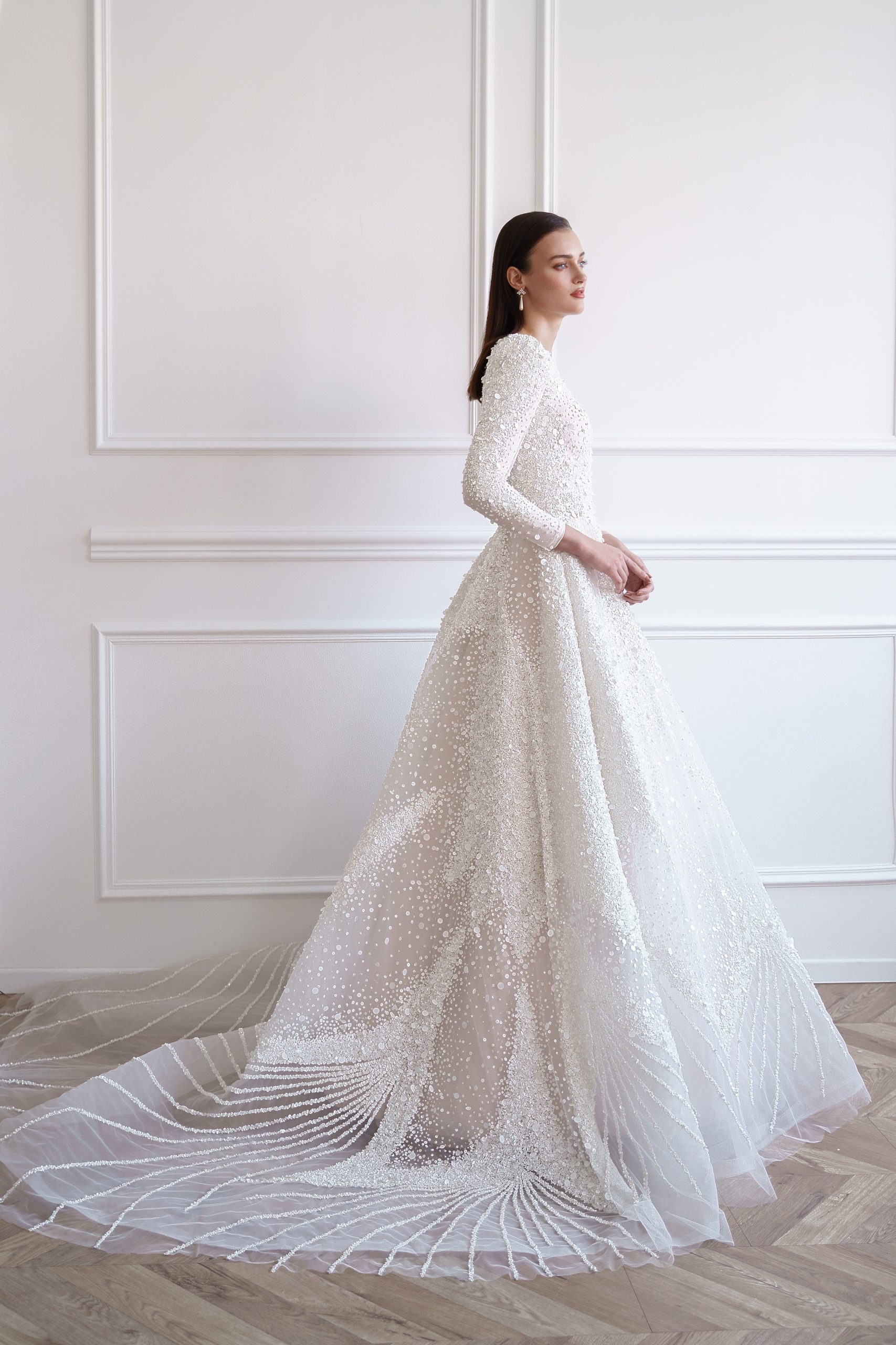 The collection is characterized by its unique glamour, full of femininity and elegance. It includes embroidered and beaded dresses, featuring unique, invested handiwork that combines elegant and delicate lace fabrics to achieve a romantic and luxurious look. From creative thought and precise planning of every detail, the results are now presented to you romantic, prestigious, and unique.